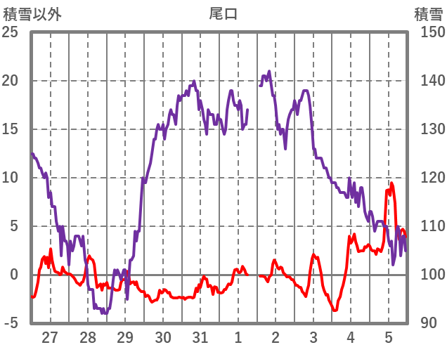 | 日 | 時 | 気温 | 降水 | 風向/風速 | 日照 | 積雪 | 降雪 |