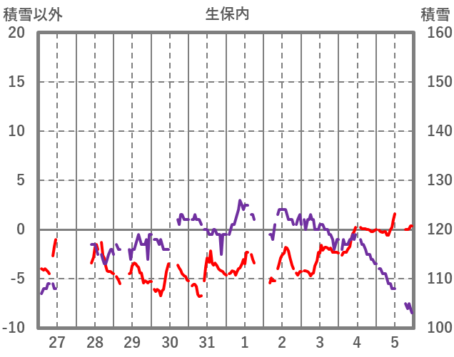 | 日 | 時 | 気温 | 降水 | 風向/風速 | 日照 | 積雪 | 降雪 |