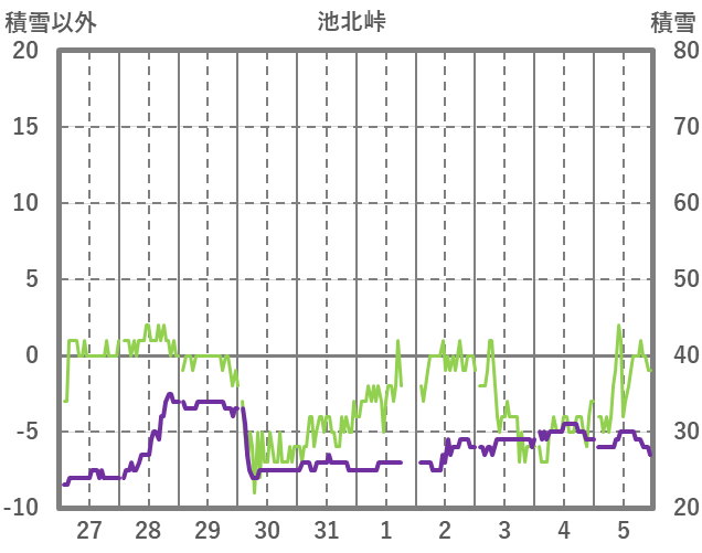 | 日 | 時 | 気温 | 降水 | 風向/風速 | 日照 | 積雪 | 降雪 |