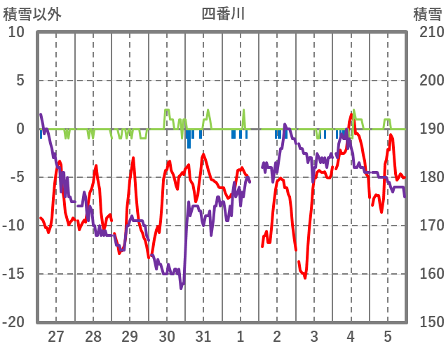 | 日 | 時 | 気温 | 降水 | 風向/風速 | 日照 | 積雪 | 降雪 |