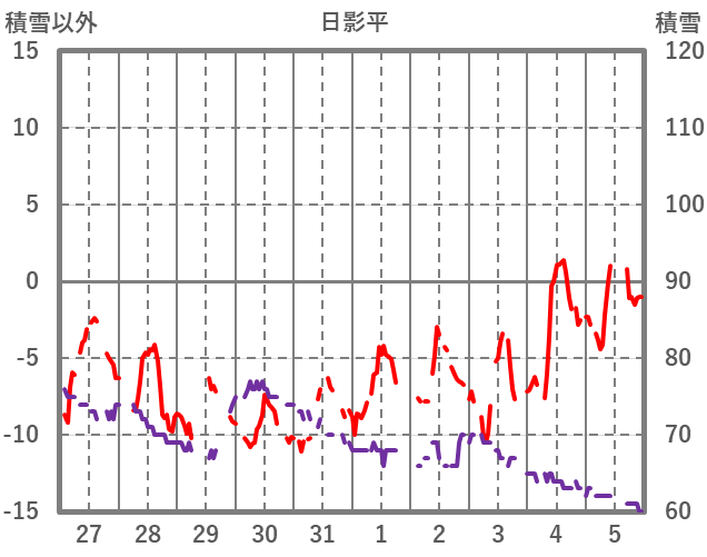 | 日 | 時 | 気温 | 降水 | 風向/風速 | 日照 | 積雪 | 降雪 |