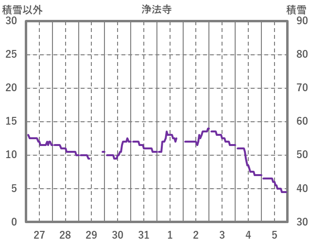 | 日 | 時 | 気温 | 降水 | 風向/風速 | 日照 | 積雪 | 降雪 |