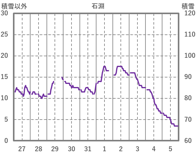 | 日 | 時 | 気温 | 降水 | 風向/風速 | 日照 | 積雪 | 降雪 |