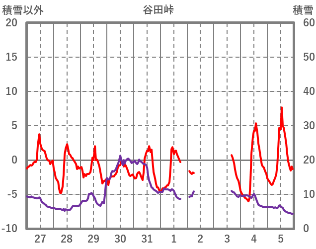 | 日 | 時 | 気温 | 降水 | 風向/風速 | 日照 | 積雪 | 降雪 |