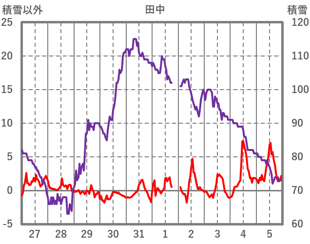 | 日 | 時 | 気温 | 降水 | 風向/風速 | 日照 | 積雪 | 降雪 |