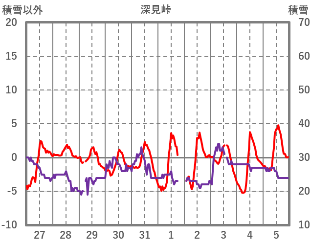 | 日 | 時 | 気温 | 降水 | 風向/風速 | 日照 | 積雪 | 降雪 |