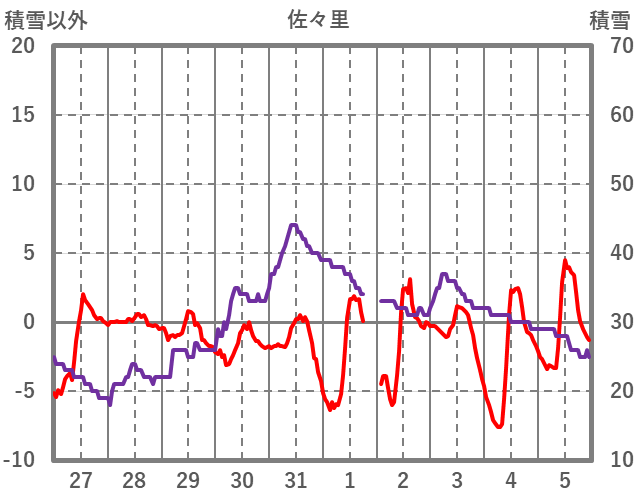 | 日 | 時 | 気温 | 降水 | 風向/風速 | 日照 | 積雪 | 降雪 |