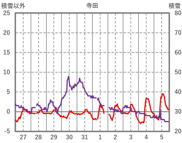 | 日 | 時 | 気温 | 降水 | 風向/風速 | 日照 | 積雪 | 降雪 |