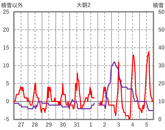 | 日 | 時 | 気温 | 降水 | 風向/風速 | 日照 | 積雪 | 降雪 |