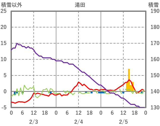 | 日 | 時 | 気温 | 降水 | 風向/風速 | 日照 | 積雪 | 降雪 |