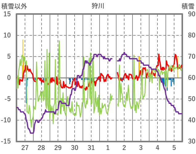 | 日 | 時 | 気温 | 降水 | 風向/風速 | 日照 | 積雪 | 降雪 |