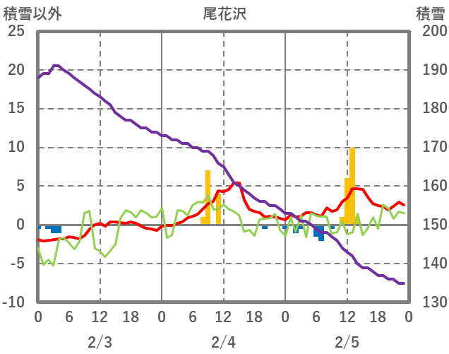 | 日 | 時 | 気温 | 降水 | 風向/風速 | 日照 | 積雪 | 降雪 |