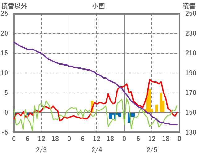 | 日 | 時 | 気温 | 降水 | 風向/風速 | 日照 | 積雪 | 降雪 |