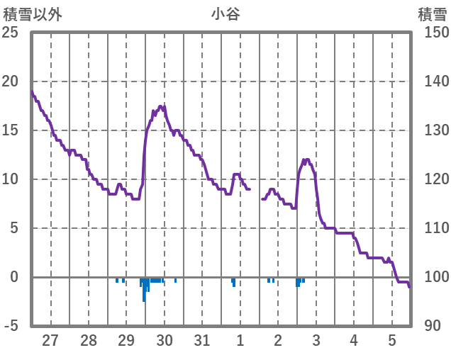 | 日 | 時 | 気温 | 降水 | 風向/風速 | 日照 | 積雪 | 降雪 |