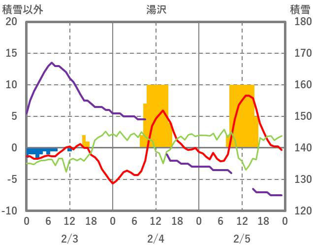 | 日 | 時 | 気温 | 降水 | 風向/風速 | 日照 | 積雪 | 降雪 |