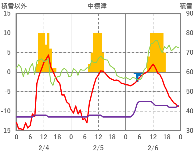 | 日 | 時 | 気温 | 降水 | 風向/風速 | 日照 | 積雪 | 降雪 |