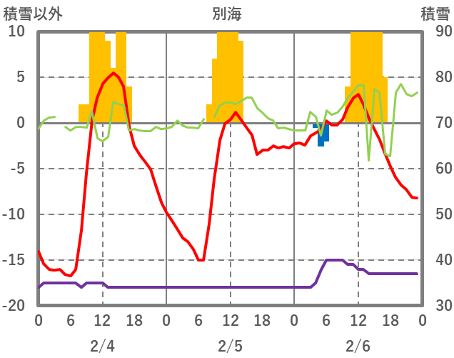 | 日 | 時 | 気温 | 降水 | 風向/風速 | 日照 | 積雪 | 降雪 |