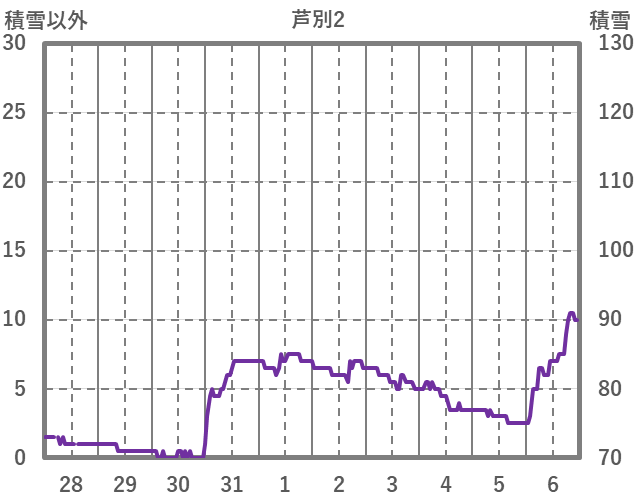 | 日 | 時 | 気温 | 降水 | 風向/風速 | 日照 | 積雪 | 降雪 |