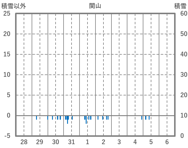 | 日 | 時 | 気温 | 降水 | 風向/風速 | 日照 | 積雪 | 降雪 |