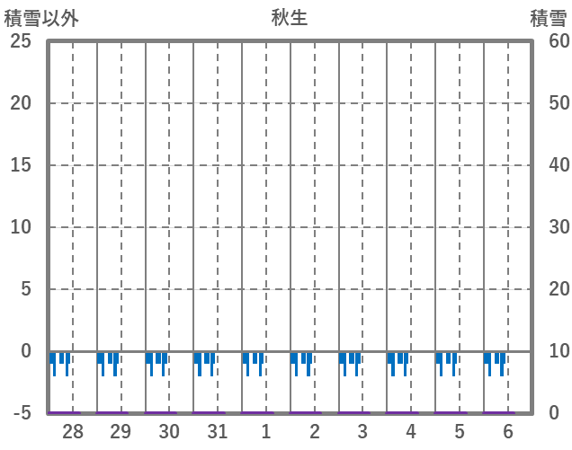 | 日 | 時 | 気温 | 降水 | 風向/風速 | 日照 | 積雪 | 降雪 |