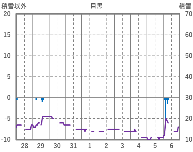 | 日 | 時 | 気温 | 降水 | 風向/風速 | 日照 | 積雪 | 降雪 |