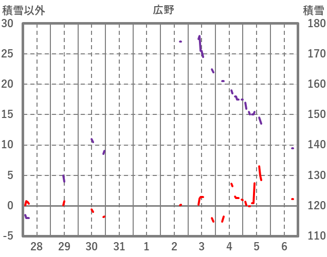 | 日 | 時 | 気温 | 降水 | 風向/風速 | 日照 | 積雪 | 降雪 |
