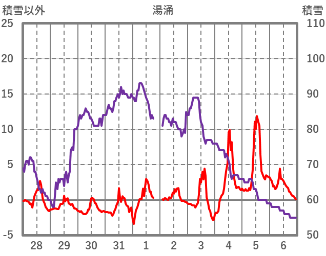 | 日 | 時 | 気温 | 降水 | 風向/風速 | 日照 | 積雪 | 降雪 |