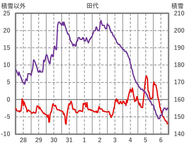 | 日 | 時 | 気温 | 降水 | 風向/風速 | 日照 | 積雪 | 降雪 |