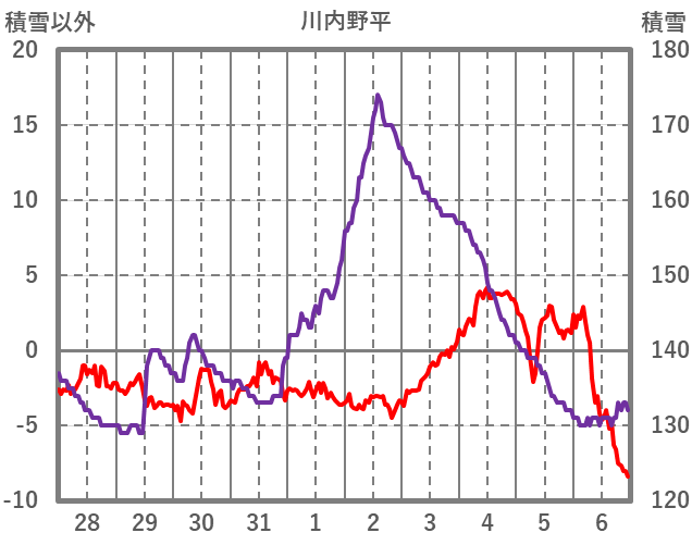 | 日 | 時 | 気温 | 降水 | 風向/風速 | 日照 | 積雪 | 降雪 |