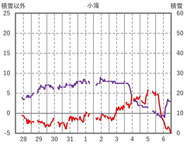 | 日 | 時 | 気温 | 降水 | 風向/風速 | 日照 | 積雪 | 降雪 |