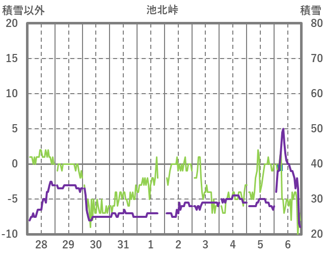 | 日 | 時 | 気温 | 降水 | 風向/風速 | 日照 | 積雪 | 降雪 |