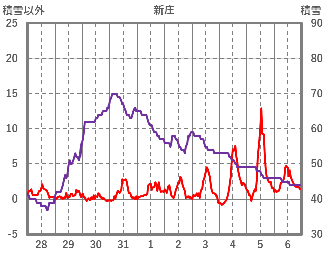 | 日 | 時 | 気温 | 降水 | 風向/風速 | 日照 | 積雪 | 降雪 |