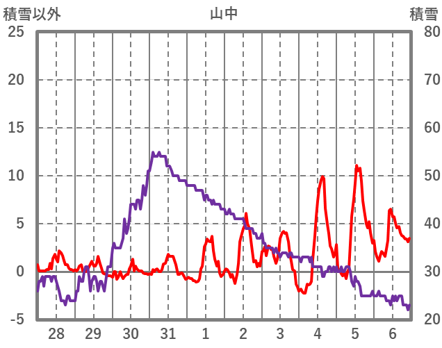 | 日 | 時 | 気温 | 降水 | 風向/風速 | 日照 | 積雪 | 降雪 |