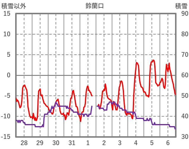 | 日 | 時 | 気温 | 降水 | 風向/風速 | 日照 | 積雪 | 降雪 |