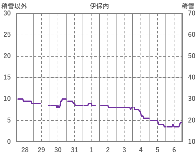 | 日 | 時 | 気温 | 降水 | 風向/風速 | 日照 | 積雪 | 降雪 |