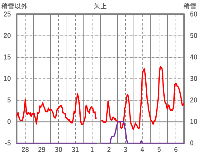 | 日 | 時 | 気温 | 降水 | 風向/風速 | 日照 | 積雪 | 降雪 |