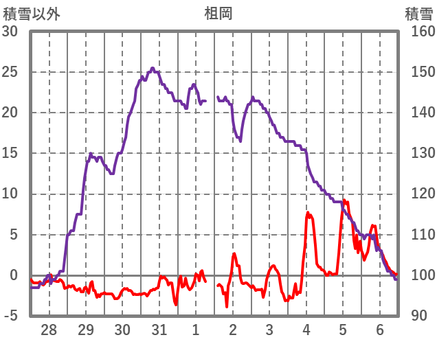 | 日 | 時 | 気温 | 降水 | 風向/風速 | 日照 | 積雪 | 降雪 |