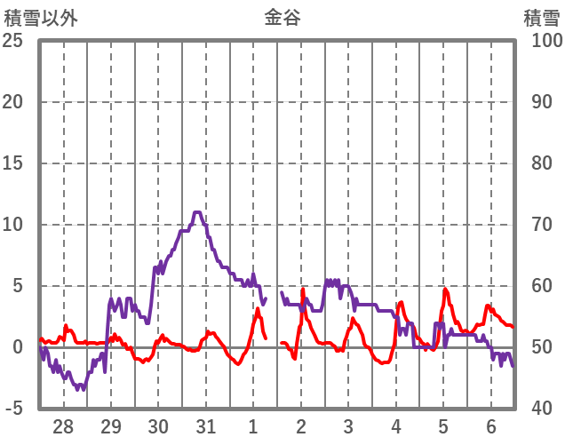 | 日 | 時 | 気温 | 降水 | 風向/風速 | 日照 | 積雪 | 降雪 |