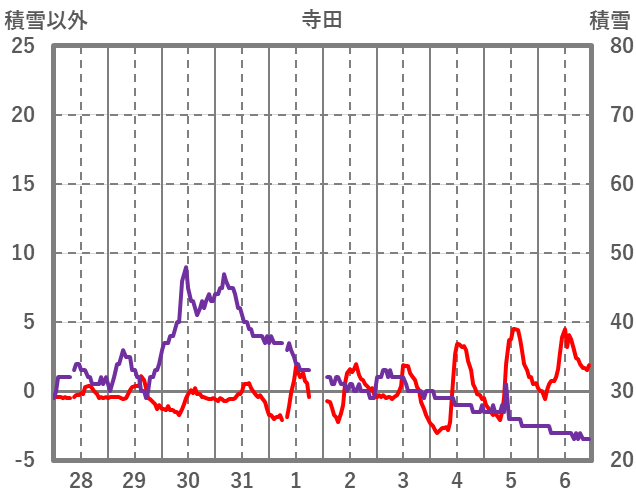 | 日 | 時 | 気温 | 降水 | 風向/風速 | 日照 | 積雪 | 降雪 |