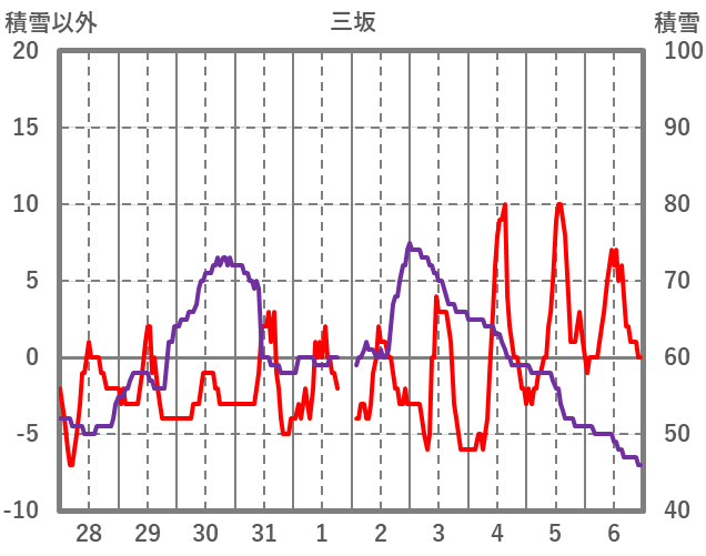 | 日 | 時 | 気温 | 降水 | 風向/風速 | 日照 | 積雪 | 降雪 |