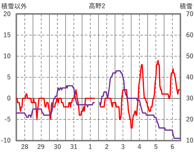 | 日 | 時 | 気温 | 降水 | 風向/風速 | 日照 | 積雪 | 降雪 |