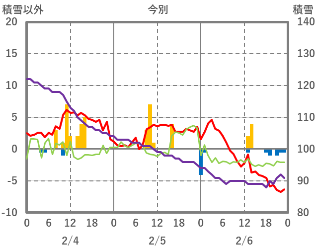 | 日 | 時 | 気温 | 降水 | 風向/風速 | 日照 | 積雪 | 降雪 |