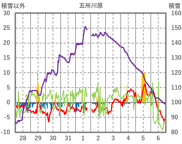 | 日 | 時 | 気温 | 降水 | 風向/風速 | 日照 | 積雪 | 降雪 |