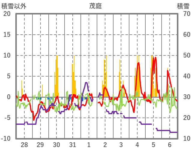 | 日 | 時 | 気温 | 降水 | 風向/風速 | 日照 | 積雪 | 降雪 |