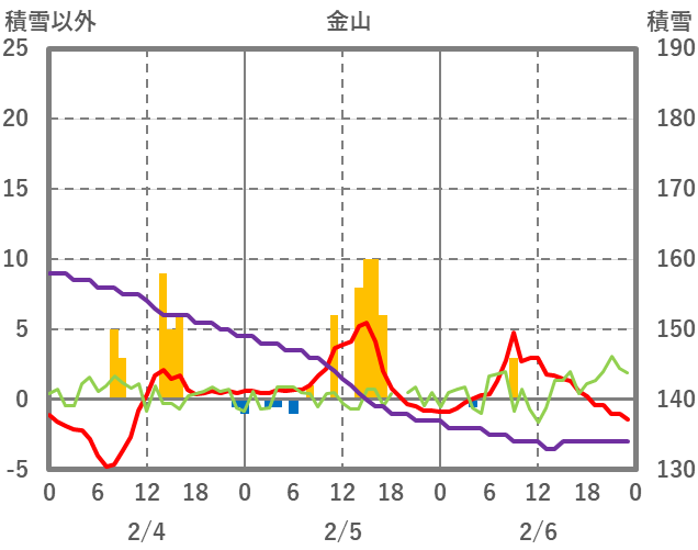 | 日 | 時 | 気温 | 降水 | 風向/風速 | 日照 | 積雪 | 降雪 |