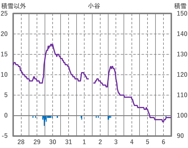 | 日 | 時 | 気温 | 降水 | 風向/風速 | 日照 | 積雪 | 降雪 |