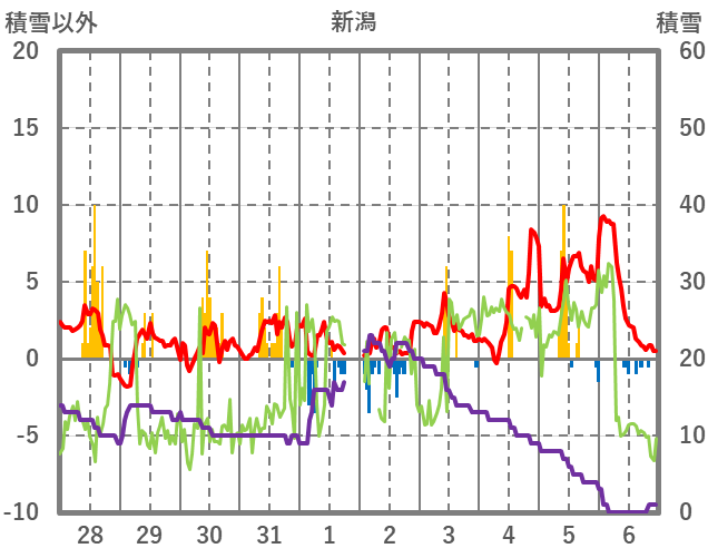 | 日 | 時 | 気温 | 降水 | 風向/風速 | 日照 | 積雪 | 降雪 |