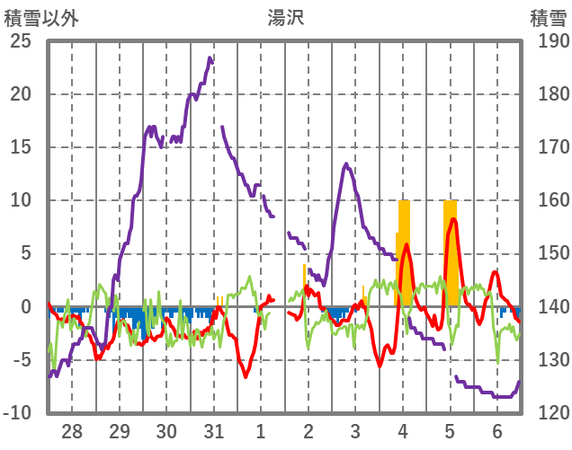 | 日 | 時 | 気温 | 降水 | 風向/風速 | 日照 | 積雪 | 降雪 |
