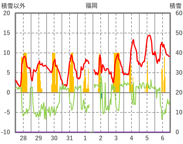 | 日 | 時 | 気温 | 降水 | 風向/風速 | 日照 | 積雪 | 降雪 |