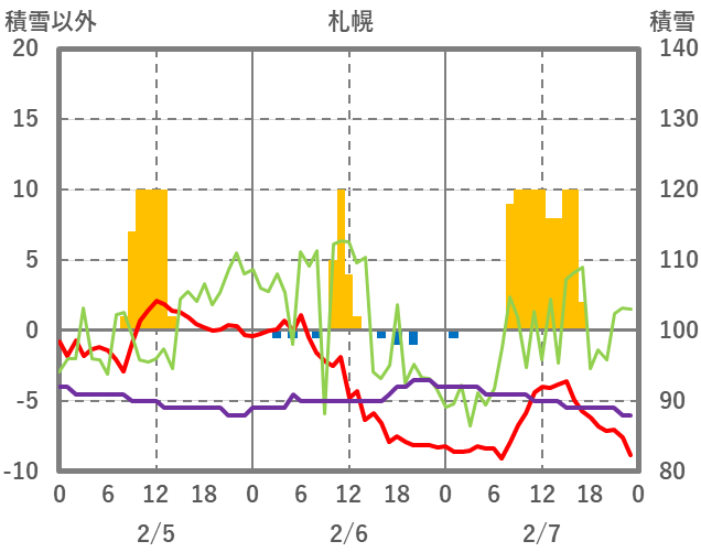 | 日 | 時 | 気温 | 降水 | 風向/風速 | 日照 | 積雪 | 降雪 |